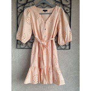 1 State Cotton Eyelet Embroidered Dress - Size Small - Peach/ Pink