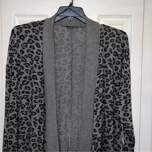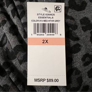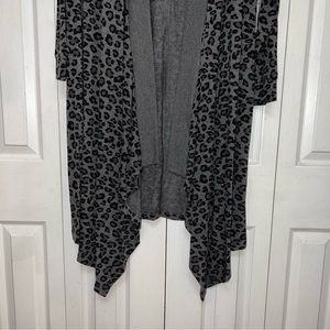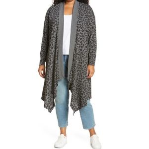 1. State Drape Front Maxi Cardigan, NWT, Size 2X, Color-Animal print-Grey/black. This long, sweeping cardi is the versatile and eye-catching layer that’s purr-fectly on trend. 67.5% polyester 29% rayon 3.5% spandex.