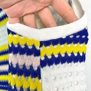 Gently used 1. State far out striped open back tank top. Crochet open-knit with full lining. Cute open back detail adds a fun twist. Great for office wear or casual outing. Has a longer length and is flowy for more comfort.