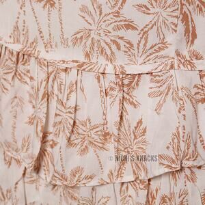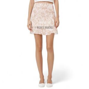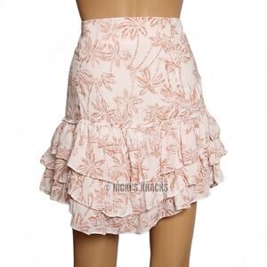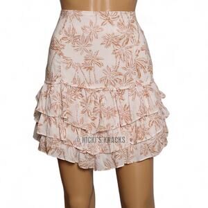 1 State Floral Palm Tree Print Ruffle Mini Skirt Pull On White & Tan Size L