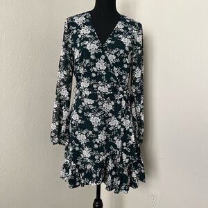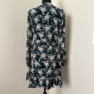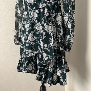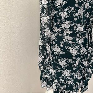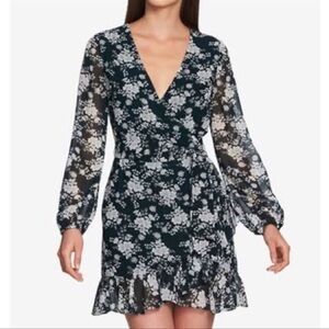 1. State Floral Ruffled Wrap Sheer Long Sleeve Mini Dress