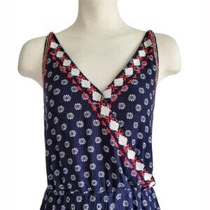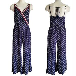 1. State Gypsy Night Embroidered Navy V-Neck High-Slit Wide-Leg Jumpsuit Size S