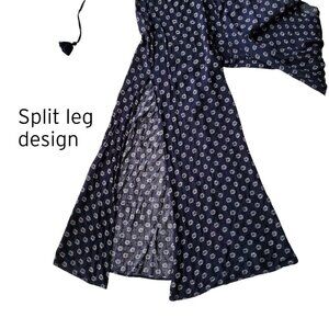 1. State Gypsy Night Embroidered Navy V-Neck High-Slit Wide-Leg Jumpsuit Size S
