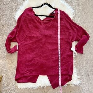 1. State Knot Back Waffle Knit Top in Deep Rouge New With Tags