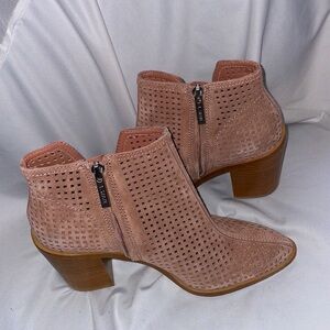 1. State Larocka Suede Leather Blush Pink Laser Cut Out Ankle Boots size 7.5