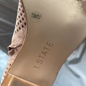 1. State Larocka Suede Leather Blush Pink Laser Cut Out Ankle Boots size 7.5. Very good preowned condition. Minor wear on soles.