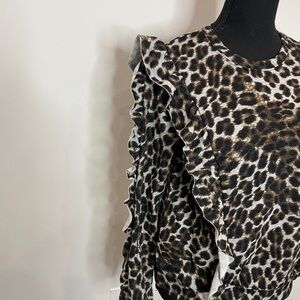 NWT - 1. State Leopard Long Sleeve Ruffle Sweatshirt