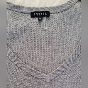 1. State Light Gray Textured V-Neck Lightweight Sweater Bubble Sleeve Size XL