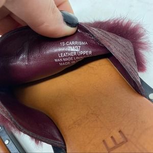 1. State Maroon Purple Red Faux Fur Embellished Leather Flat Sandals