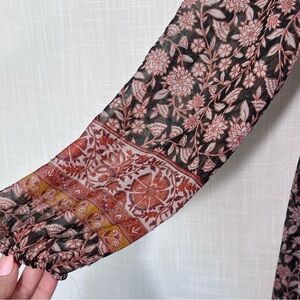 1. State NWT Floral Gold Metallic Button Front Bell Sleeve Boho Dress
