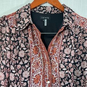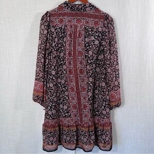 1. State NWT Floral Gold Metallic Button Front Bell Sleeve Boho Dress Sz S
