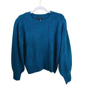 1. State NWT Variegated Cables Crew Sweater Teal Balloon Sleeve Size L