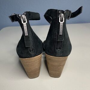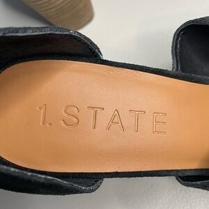 1. State Nallay Black Suede Block Heel Open Toe Sandals Size 9