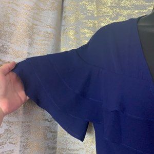 - Gorgeous navy blue Surplice neck ,Soft ruffles accentuate the whimsical, faux-wrap silhouette of a versatile short sleeve midi dress.