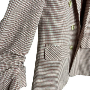 1. State Pink Shoulder Pad Double Breasted Check Print Pink Blazer Size S