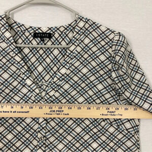 1. State Plaid V Neck Soft Lightweight Short Sleeve Button Down Large