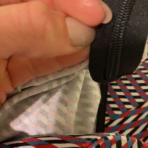 Zipper has a sewn over cover to prevent it from zipping more then needing and ripping!