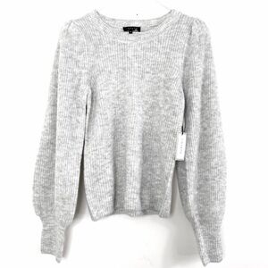 1 State Ruffle Balloon Sleeve Crewneck Rib Sweater Silver in light Gray New with Tags