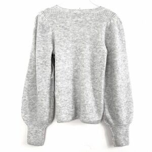 1 State Ruffle Balloon Sleeve Crewneck Rib Sweater Silver in light Gray New