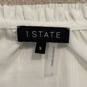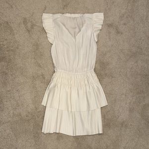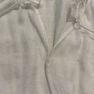 Great Used Condition, worn a couple times, no picks, pilling, or tears, 2 small imperfections (pictured); ruffle details, slight v-neck with tie, elastic waistband
