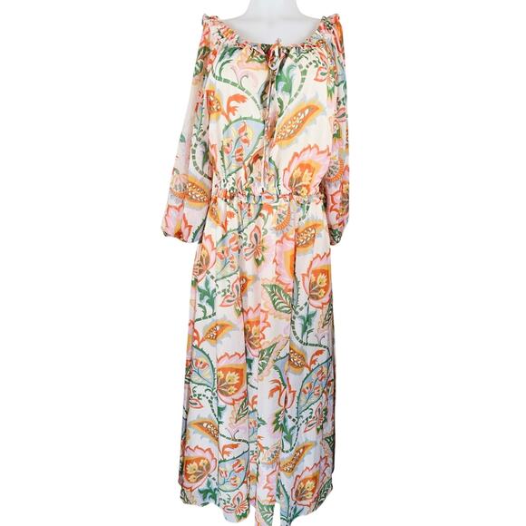 1 State STUNNING Floral Leaf Vacation Bohemial Festival Women's Maxi Dress M NWT
