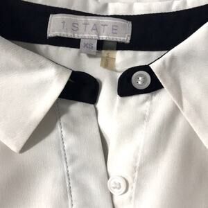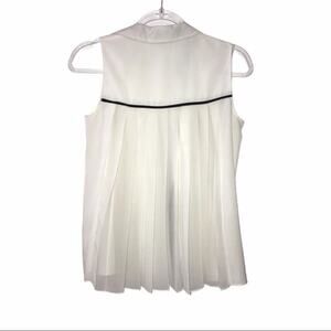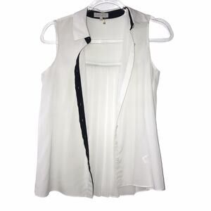 1 State Sleeveless Ivory / Off-White w/ Black Trim Button Down Back Pleated Top XS