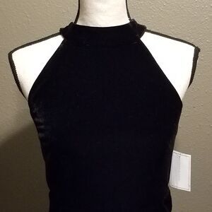 1 State Small Jumpsuit Black Velvet Halter Mock Neck Wide Leg Holiday Formal NEW