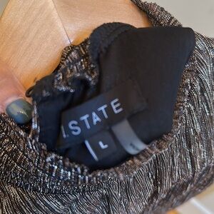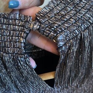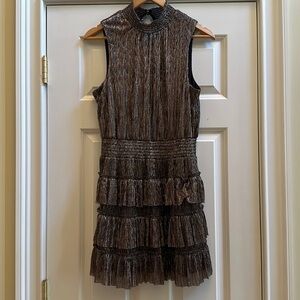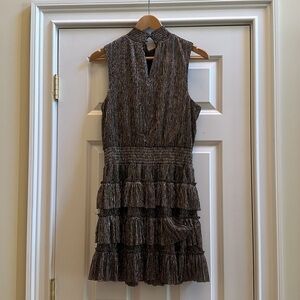 1. State Smocked Mock Neck Sleeveless Tiered Ruffle Shimmer Mini Dress Large