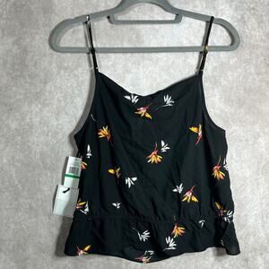 1. State Tabea Top Womens Large Black Floral Spaghetti Strap Ruffle Hem Boho NEW