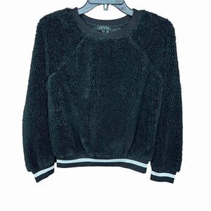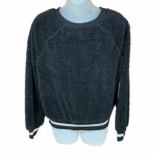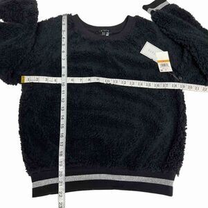 1. State Teddy Fuzzy Sweatshirt Pullover Top Black Silver Metallic Trim Small
