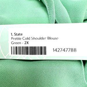 1. State Top Women's 2X Green Preble Cold Shoulder Long Sleeve V-neck NWT