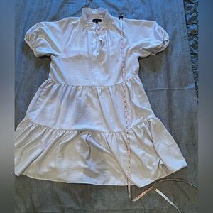 Color: The dress is white in color, consistent with the "Ultra White" description found for similar 1.STATE tiered ruffle shift