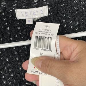 1. State Winter Frost Black White Eyelash Fringe Open Cardigan Jacket NWT Size M.