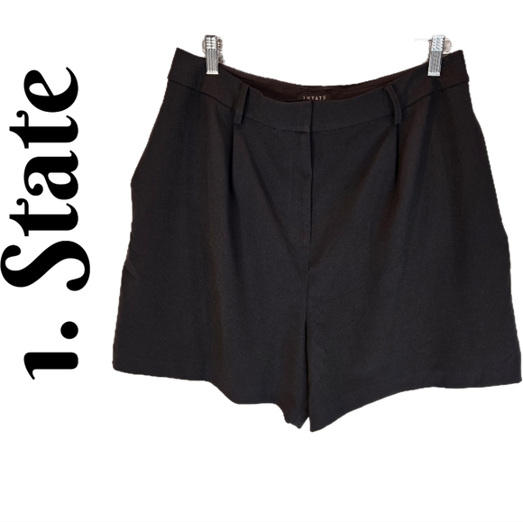 1. State Women's Black Tailored Dress Shorts Sz 12 Pleated High Waist Pockets