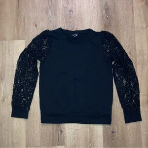 1. State Women’s Classic Black Cotton Top with Lace Sleeves | Size Medium