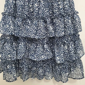 1. State Women's Navy & Grey Animal Print Smocked Ruffle Tiered Dress Size S