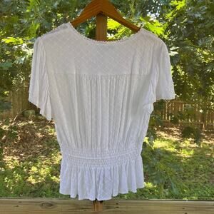 Measures 18 inches underarm to underarm and 22.5 inches shoulder to hem. Measurements are taken laying flat and are approximate, not exact.