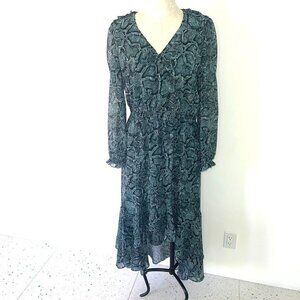 1. State Wrap Dress Womens Size Medium M Snake Print Elastic Waist Cuffs Lined