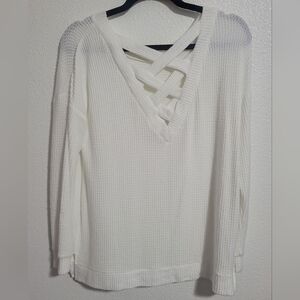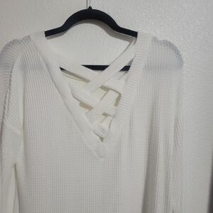 1 State criss-cross back oversized size small see pics for verification of size used no stains however has small hole as shown in pics measurements approximately flat lay pit to pit 20 length 26 sleeve 23