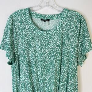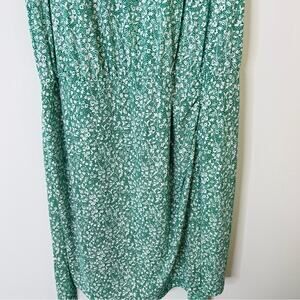 1 State green white ditzy floral cottagecore faux wrap stretchy midi dress 1X