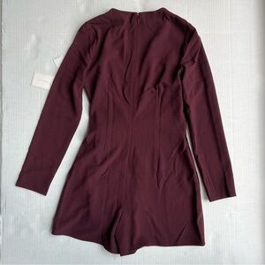 Wrap romper with hidden back zipper. V neck line. Romper has side Pockets. Size xs color is called Cherry noir.