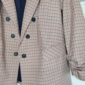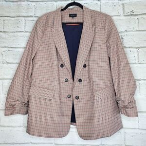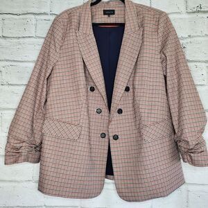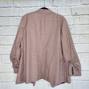 1. State plaid Ruched sleeve Open front blazer Womens 3x