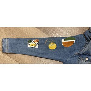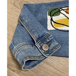 1 Sunset Lane Hand-Painted Botanical Leaf Design Denim Jacket XL Casual Boho