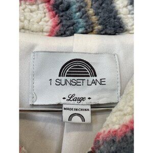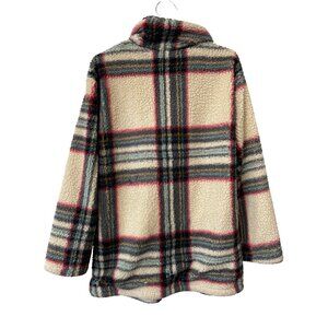 1 Sunset Lane Sherpa Jacket Size Large Plaid Full Zip Long Sleeve Cozy Outerwear
