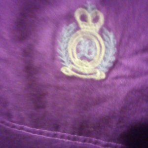 This long sleeve button down Bugle Boy dress shirt is new w/ tags. SIZE SMALL.100% cotton and made in China. Nice Bugle Boy "B" emblem on pocket. Wash prior to wearing machine wah seperately in cold water (will bleed slightly during first washing. Tumble dry on low and do Not bleach.