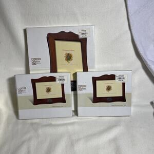 This is a vintage Fetco Handcraft photo frame set, including one frame for an 8x10 inch photo and two frames for 6x4 inch photos. The frames have a rustic brown wooden finish in a traditional style, suitable for all occasions. The 8x10 inch frame measures 12x10 inches, making it suitable for displaying cherished memories in a classic and elegant way.