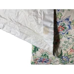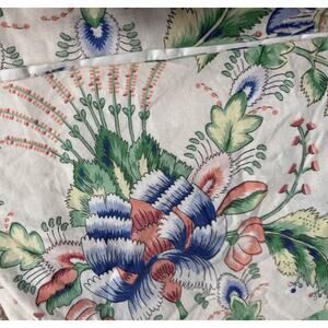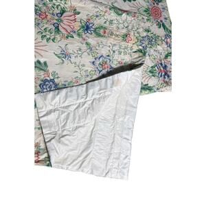Vibrant and rare custom-made curtain panel by designer Jay Yang as part of the "Collection Musee De Arts" troupe. An off-white base with a multi-colored Jacobean-themed floral motif pattern. The curtain panel is double lined. Will need to be affixed with curtain clips. Truly stunning!