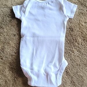 1 White Gerber Bodysuit/Onesie. Very soft. You can customize it. Never been worn. Smoke and Pet free home.