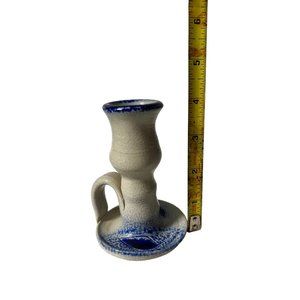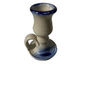 1 Williamsburg Pottery Candlestick Holder Primitive Folkart Americano Blue gray