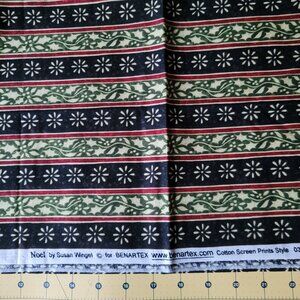 1 YARD Green & Red Striped Patterned "NOEL" By Susan Winget For Benartex